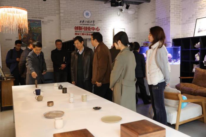 會(huì)前,國(guó)資委劉三民書(shū)記一行在西安工程大學(xué)副校長(zhǎng)李鵬飛陪同下參觀了時(shí)尚文化創(chuàng)意產(chǎn)業(yè)園、時(shí)尚工藝坊,了解學(xué)校創(chuàng)新創(chuàng)業(yè)、教學(xué)科研、人才培養(yǎng)和產(chǎn)學(xué)研合作等情況。