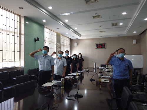 參會(huì)人員首先合唱入黨誓詞歌《我宣誓》。
