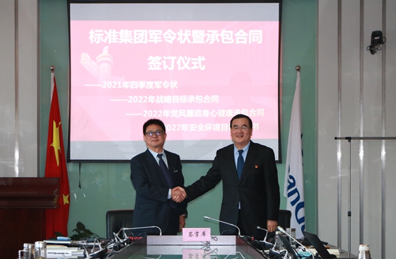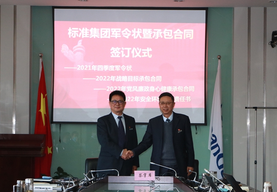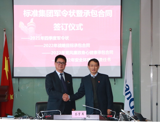 集團與各馬隊簽訂2021年四季度軍令狀、2022年戰(zhàn)略目標(biāo)承包合同、黨風(fēng)廉政身心健康承包合同、安全環(huán)境目標(biāo)責(zé)任書