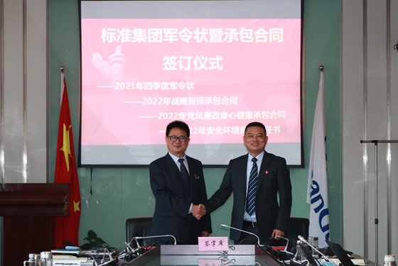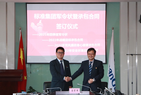 集團黨委書記、董事長李鴻與標(biāo)準(zhǔn)股份董事長、標(biāo)準(zhǔn)供應(yīng)鏈馬隊領(lǐng)隊杜俊康簽訂軍令狀