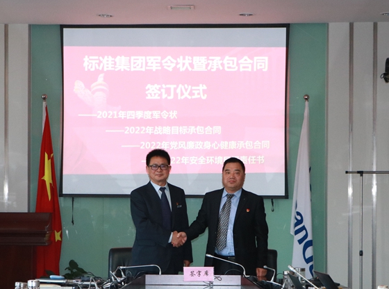 會上,集團黨委書記、董事長李鴻與集團各馬隊領(lǐng)隊簽訂了標(biāo)準(zhǔn)集團2021年四季度軍令狀、2022年戰(zhàn)略目標(biāo)承包合同、黨風(fēng)廉政身心健康承包合同、安全環(huán)境目標(biāo)責(zé)任書等。