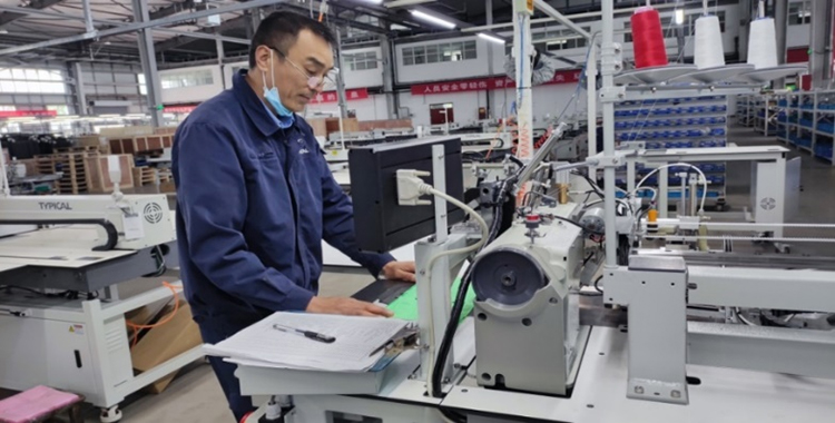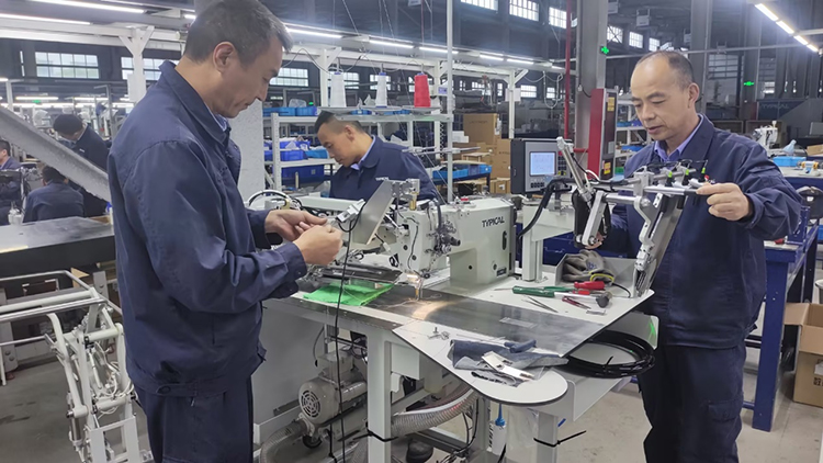 5月23日,裝備總裝中心為浙江某客戶訂單生產的“標準”牌BAS3500開袋機即將出貨。這臺開袋機是根據(jù)浙江客戶要求在出貨前臨時更改機型,增加了自動裝拉鏈功能??蛻羰钦憬患掖笮头b制造廠家,為了提高公司制衣的產量和質量,他們專門訂購這臺“標準”牌AS3500拉鏈開袋機。